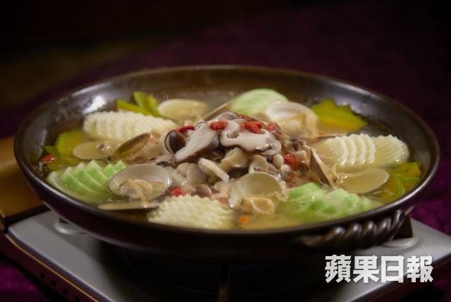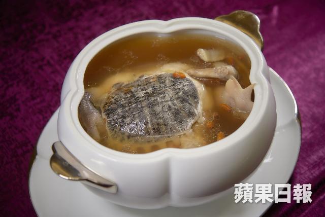 董師傅先為我們做一道經典的台菜菜式:雞仔豬肚鱉。「雞仔豬肚鱉其實是傳統阿舍菜的菜式,阿舍是指稱台南的富貴人家,阿舍以前在家裏宴客,都會找家廚做菜。」Liz一邊觀察着董師傅做菜的過程,一邊向我解釋。其實這道菜的主要材料就只有土雞、豬肚以及鱉,不過做工就非常繁複,要先將雞去骨,然後把鱉的內臟除掉,再連豬肚一起拿去汆水,汆水後可將所有材料塞進雞身,再次汆水定形,撈起後將雞放在煲內,鱉魚殼蓋着雞身,加中藥材、米酒、紹酒,再加熬了八小時的高湯拿去蒸至少兩個多小時,才叫完成。