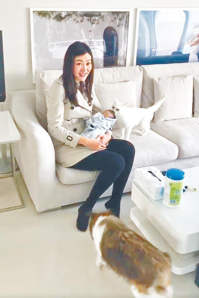 前年懷首胎時在網上貼愛犬合照,指懷孕後驗血檢查,沒因小動物冀便傳染生蟲,去年又貼出家中貓狗歡迎囝囝出院回家的相。