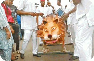 尼日利亞一名土豪生前有外號「草原雄獅」,死後親友也特別打造獅子形棺材為他下葬,然而獅棺外形卡通滑稽,威武欠奉反添可笑感覺。