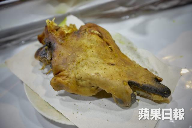羊肉是摩洛哥人重要的肉食,他們吃羊吃得出神入化,除了羊腩、羊扒,還有羊腦和羊頭。我們點了半個羊頭,盛惠35迪拉姆(約30港元),上碟時還真的頗嚇人,張大口露出一排牙。拿起刀叉,完全不知從何入手,索性把它切半撕開,再品嘗「面珠登」肉,原來都頗多肥油。羊頭需燜煮五個小時,加入辣椒粉和孜然粉,去除羶味,而且肉質軟腍,配麵包吃剛剛好。