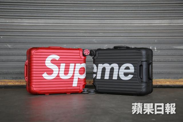 數近日最有話題性的潮物,必定是SUPREME × RIMOWA行李箱,消息一出,網上即時引起潮人們熱烈討論。這個在星期六(4月14日)正式在香港開賣的最潮之篋,實物跟網上相片一樣咁有型,用上RIMOWA相當經典的Topas Multiwheel款式,配上大大個Supreme標誌。設有紅及黑兩色,紅色固之言搶眼度訩滿分,亦有百分百SUPREME feel,不過其實黑色也同樣精采有型,外形完全冇得輸。這潮篋有45L和82L兩個size,不過香港暫時就只有45L發售,售價為$15,600,相比普通版同款Topas Multiwheel款式($8,080)貴差不多一倍,值唔值就見仁見智,不過網上就已經有不少潮人出價到$20,000至$22,000來買它,所以說潮流嘅嘢你懂個篋咩。