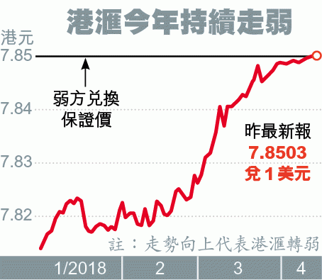 該局發言人稱,金管局在昨日清晨紐約時段,弱方兌換保證價被觸及時,以7.85價位再向市場沽出4.29億美元,連同當日較早前交易,兩次操作後令下周二銀行體系結餘減少64.06億元。