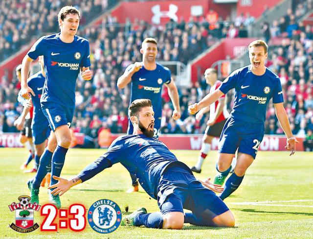 絕地反擊!上周六英超頭場,過去兩場英超不勝的車路士,作客落後兩球下憑後備入替的「銀河唯一」基奧特梅開二度,結果成功以3:2反勝修咸頓,一洗近期頹風。