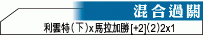 周日西甲馬德里雙雄分途出擊,兩軍都在上周中歐洲賽激戰完畢,體力消耗下或作出輪換戰力銳減,均屬可勝不穩格局。其中馬德里體育會遠征士砵亭後,返主場迎戰近五場不敗的利雲特,馬體會要讓球半/兩球,宜捧下盤。(球賽編號:星期日38;now632台今日10:15pm直播)