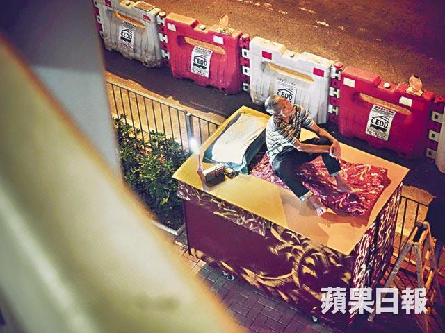 平時佢會回大角嘴橋底在木屋裏雙腳着地生活。如果要洗地或地政署清場,他把家當丟進屋裏,連人帶屋一齊避風頭。「看哪裏方便我就去哪囉,後巷、隔籬街都可以。我最喜歡隔籬球場的小街,風涼水冷,比大街安靜好多。夜晚有好多燈,又可以睇人踢波。」不過公園11點就關門,路也較窄自覺阻街,他又回橋底或者後巷,靜靜過。