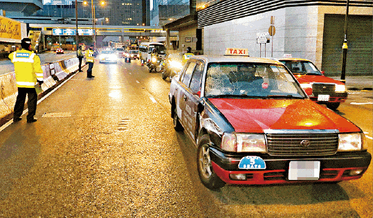 一輛的士沿快線駛至,司機見狀連忙扭軚閃避,但仍將該男子撞到拋至半空,再彈飛至5米外倒卧地面。他頭部着地重創昏迷,救護車到場將他送院搶救,至清晨5時34分宣告不治。