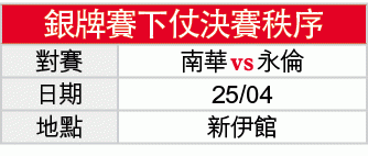 銀牌賽決賽昨晚假新伊館舉行,負方組永倫靠泰那射入全場最高的24分,以80:71擊敗南華先拔頭籌。紅黃下周三(25日)終極決戰新伊館,勝方將可捧盃而回。