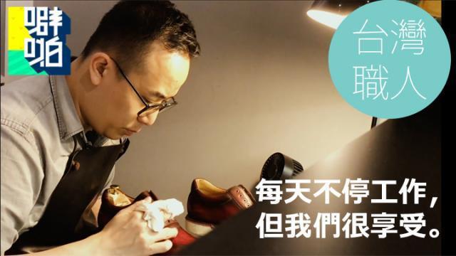太太在後台努力製作皮鞋,自己則在店面忙進忙出,招呼客人。