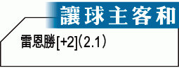 法甲豪門巴黎聖日耳門(PSG)已成本土三冠王,在餘下兩周聯賽屬例行公事,考慮PSG必起用大批後備兵,眾將在世盃前亦有顧忌,面對要力保前五的雷恩,恐有連續失分危機,雷恩「讓球主客和」[+2]「客勝」值敲。(球賽編號:星期六55;無綫myTV Super303台明日3:00am直播)