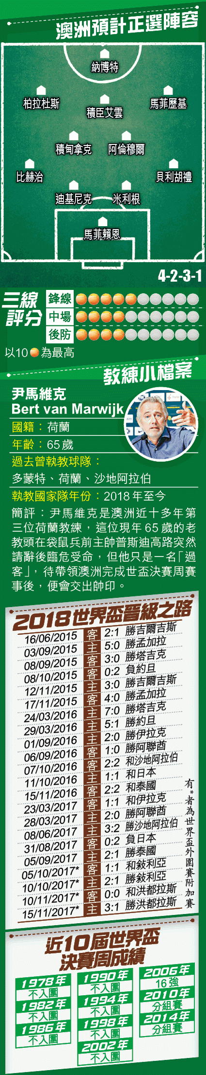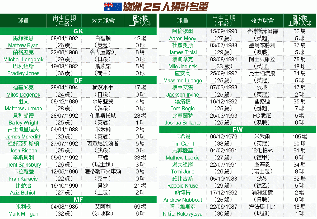 說起澳洲,體育迷對這個位處大洋洲的國家最有印象的,大概會是他們的欖球隊而非足球隊。其實,澳洲去年底成功取得2018俄羅斯世盃決賽周入場券後,已經是連續四屆踢入世盃決賽周,是這名亞洲二哥,自參加世盃以來的最好成績走勢。