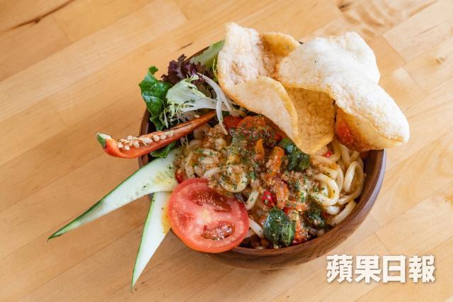 這店主打Fusion菜,目前香港的菜單保留了一些台灣店的菜式,部份加入本地元素,例如墨魚麵是用蝦籽麵代替意大利麵。台灣師傅強調料理都是自家製,沒有用所謂的半製成品。招牌菜包括泰式打拋豬烏冬、明太子脆薯、千島軟殼蟹芝士比薩、蛋包飯等等,全部均有水準。老闆高度推介的泰式打拋豬烏冬,配搭新穎,加入泰國香草打拋,打拋屬羅勒一種,還有番茄、辣椒、豬肉碎等配料一起炒,醬汁非常惹味,不過真的頗辣。明太子脆薯是台灣店長期熱賣小食,每一條粗薯條裹着濃郁明太子醬,香脆熱辣。飲品名稱亦很有趣,「尤達的體液」是特色Cocktail之一,成分有冧酒、火龍果、檸檬和薄荷,入口清新,酒精濃度不強。當然少不了咖啡,咖啡杯還是特別訂做,杯身印上「非常一般」字眼。另外有各款沙冰、茶類等,款式特別,草莓沙冰更用上手工草莓醬。