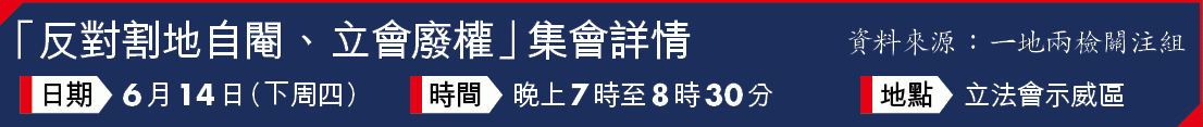 【本報訊】一地兩檢條例草案審議進入尾聲,按立法會主席梁君彥的「時間表」,最快下周可進行二讀表決。由多個團體組成的「一地兩檢關注組」計劃下周四舉行「反對割地自閹、立會廢權」集會,結合議會內外力量,控訴一地兩檢違反《基本法》、破壞一國兩制,圖力挽狂瀾。有學者認為,泛民在民意上未能佔優,對參與集會人數難寄厚望。