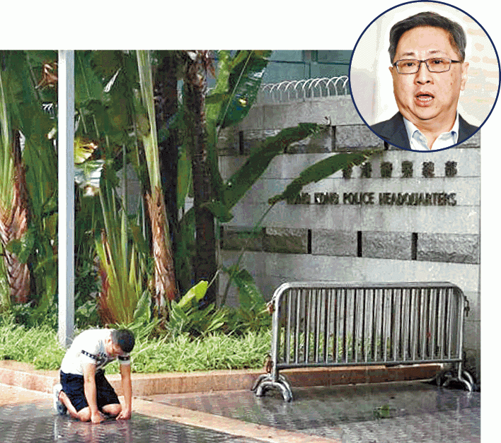【本報訊】一名被「迫令退休」的停職水警,昨晨風雨中在灣仔警察總部外跪地,要求「一哥」盧偉聰原諒,其後多名同袍將他勸入警察總部,再安排送院檢查。據悉,該名水警於2015年涉及非法進入警隊電腦系統,而被停職處分及接受內部紀律聆訊,至前日更被勒令提早退休,事主於是到警總外跪地要求復職。