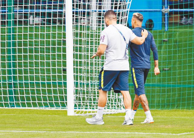 巴西喺禮拜二進行操練嘅時候,尼馬初時仍然可以同隊友有講有笑,互相傳球練習,不過唔夠幾分鐘,就見佢似乎覺得右腳有啲痛,冇耐更頂唔順要喺訓練中途離場,接受物理治療之後就直接離開訓練場地。