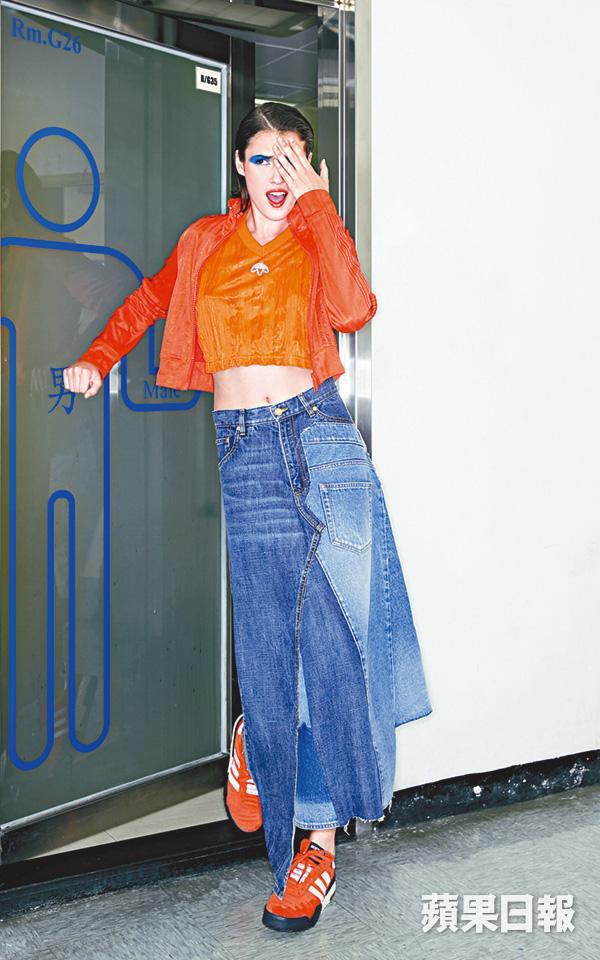 不妨利用鮮紅色彩提升活力朝氣,以同色的運動衫及波鞋來頭尾包抄,配合raw一點的牛仔裙,簡單配搭卻能營造bold一點的個性。