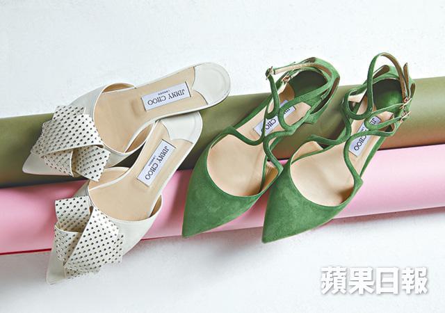 即使穿上平底鞋,也可以擁有修長的線條。除了高跟鞋,Jimmy Choo同步推出Lancer平底鞋,亮麗綠色配合優雅線條,成為不同造型的配搭之選;mules繼續大行其道,飾上窩釘蝴蝶結,優雅型格兼備。