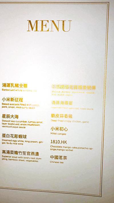 小米昨晚於君悅舉行慶祝上市晚宴,九餸一茶,除了傳統的乳豬全體、清蒸海上鮮外,有部份菜式名字都十分有創意。