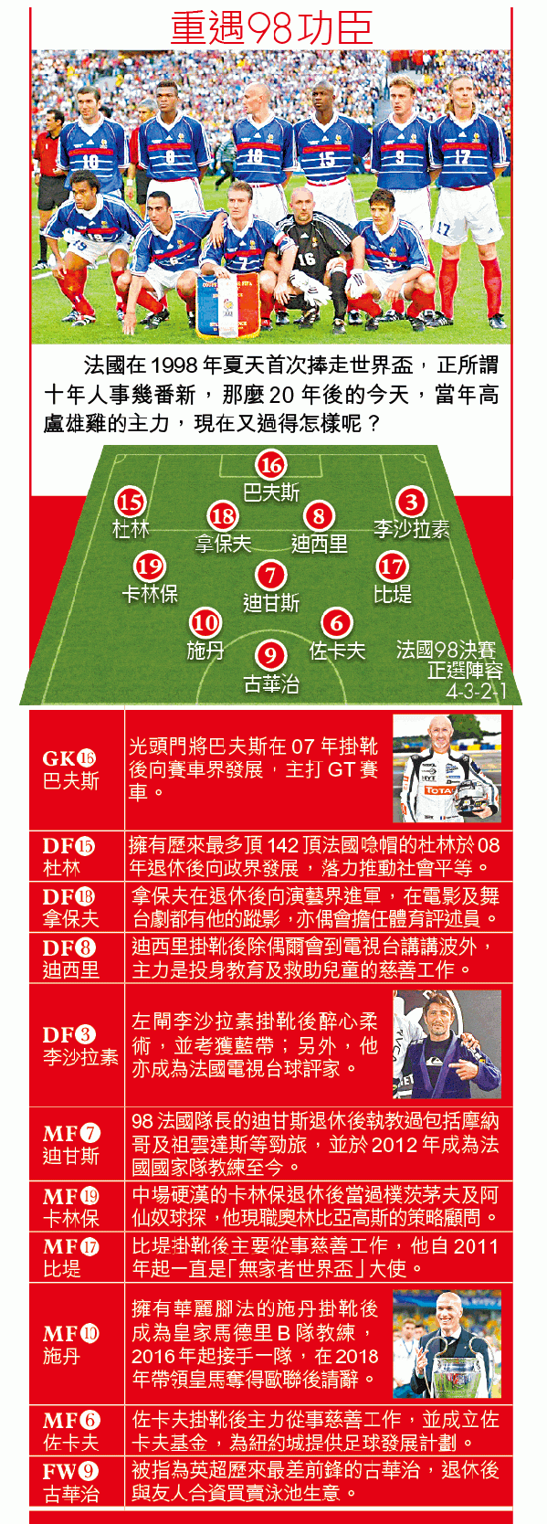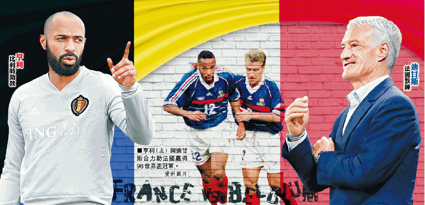 中國有句話叫做「身在曹營心在漢」,但比利時在今屆世盃四強遇上法國,這句話就不適用於比利時法籍助教亨利身上;上場無父子,亨利揚言要替比利時黃金一代正名,而一眾法國國腳亦要證明法國教頭迪甘斯才是一等一好主帥。兩大法國98世盃功臣,要在今屆世盃正面交鋒。
