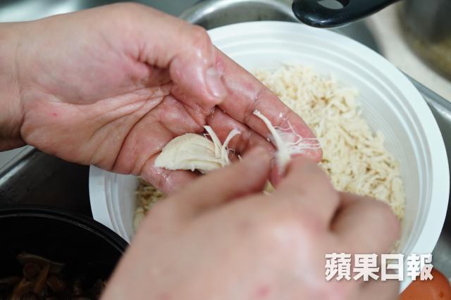 這間小食亭與坊間的食物不同,早上會賣即叫即整的三文治,中午會包餃子,煮製自家製碗仔翅和家鄉粉仔準備迎接晚上的客人。坊間碗仔翅多以肉絲作餡料,而這裏是用雞絲的,真的買雞肉慢慢拆絲,逐條整,絕不用現成貨,相當足料。「其實做一個碗仔翅心機還高於成本,我賣的碗仔翅根本很便宜,如果要計真的沒錢賺,但我只是用心做,我要賣給懂得欣賞的人。」