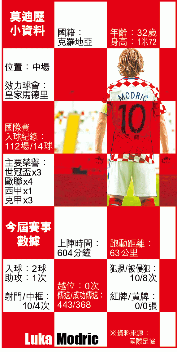 有些人話說誇張,動輒就會說"It's a matter of life and death."(生死攸關),但對於經歷了超過10年南斯拉夫內戰的克羅地亞人來說,「生死攸關」絕對不是比喻詞,而是確確實實關係到生與死,亦因如此,對於一班經歷過戰火洗禮而有幸代表國家踏足世界盃賽場的克羅地亞球員來說,他們每次上陣都可說帶着一份覺悟,並且懷着一股不讓人的鬥心,而這班格仔兵的首領,就是隊長兼中場的莫迪歷。