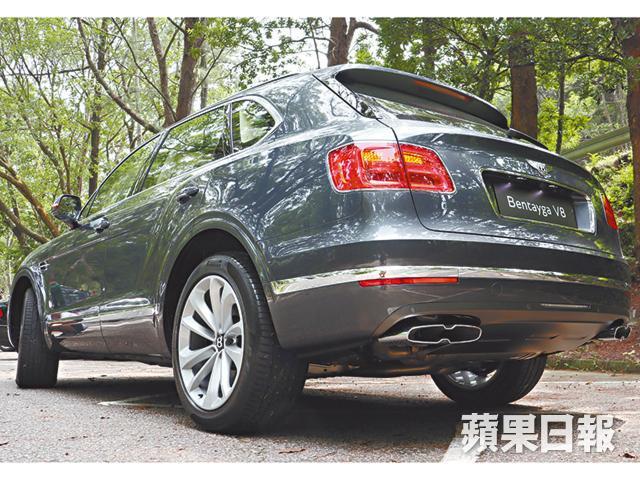 新車稱得上Bentayga入門版,引擎固然縮細,搭了一副四公升雙渦輪增壓V8引擎,馬力542匹,扭力有770Nm,連同8前速自動波箱,0-100km/h只需4.5秒,極速每小時290km/h。使用賓利Normal模式駕駛,引擎的起動反應經已很快。加速感覺當然很難跟W12引擎相比,但要應付一架車重3,250kg噸位的汽車,V8引擎表現依然十分稱職,力量很充足很快,輕輕一踏,力量隨即送到。為了優化巡航實用性,當電腦認為8缸引擎負荷不大時,就會自動關閉4缸運作,幫助減油耗,亦有助續航距離增至746公里。雖然試駕車沒有加配越野模式,但原來已配備一套氣壓懸掛可以升降避震,去到北潭涌比較偏僻山路,也無懼四處闖。