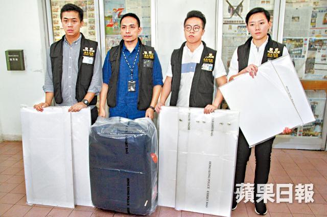 警方將張拘捕帶署調查後,昨凌晨零時押張返回偉倫堂調查,撿走兩袋證物,其中一袋裝有木板。另一隊探員及鑑證科人員則在黃克競樓張的辦公室蒐證,撿走藏屍木箱及旅行篋。