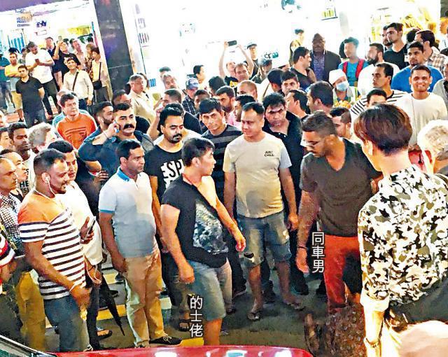 陳先生話由於事發地點喺重慶大廈,成班南亞人以為自己人被恰,幾乎同一時間走出嚟包圍的士佬對峙,不過大部份人都係食花生睇戲,並無出面解決件事。可能圍觀人群越來越多,人數超過100人,一時間群情洶湧,其後有警察趕到維持秩序,有警員手持警棍同盾牌驅散人群,以免控制唔到場面,據稱的士佬同警員呻非洲婦醉酒搭車,落車後突然折返,「話我偷電話呀!」未幾引發呢場打鬥。