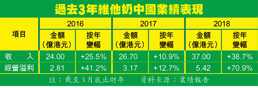 據維他奶年報,2016年4月至2017年3月(熱潮前)中國地區收入增長11%至26.7億元,售賣「康師傅冰紅茶」的康師傅當時在即飲茶市場銷量市佔率約54%。去年是維檸熱潮高峯期,至今年3月底止全年,維他奶中國收入按年急升近39%,短短一年激增10.3億元。
