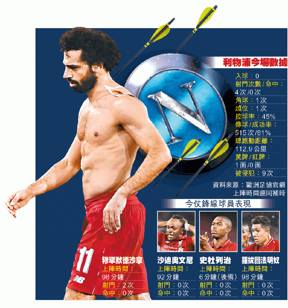 紅軍零中框輸「玻」!周三歐聯第二輪分組賽C組賽事,利物浦作客意甲拿玻里被絕殺,輸0:1。一向以火力強勁見稱的利物浦,今場竟然合共只得四次射門,當中更無一能命中目標。紅軍季初氣勢如虹,惟七連勝結束後狀態回落,以最近三戰未逢一勝的頹勢,迎接下周日主場鬥曼城的英超大戰。