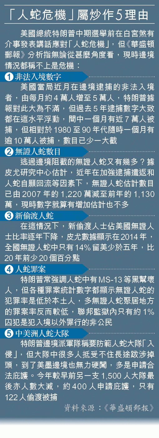 美國中期選舉下周二舉行,民調顯示總統特朗普所屬的共和黨或失眾議院控制權,驅使他孤注一擲炒熱中美洲難民大隊壓境的話題,為共和黨爭「恐懼票」。特朗普前日揚言禁止非法入境者申請政治庇護、大規模拘留庇護申請者和人蛇,又暗示會下令駐守邊境的美軍鎮壓掟石者,要他們視石頭為「步槍」。