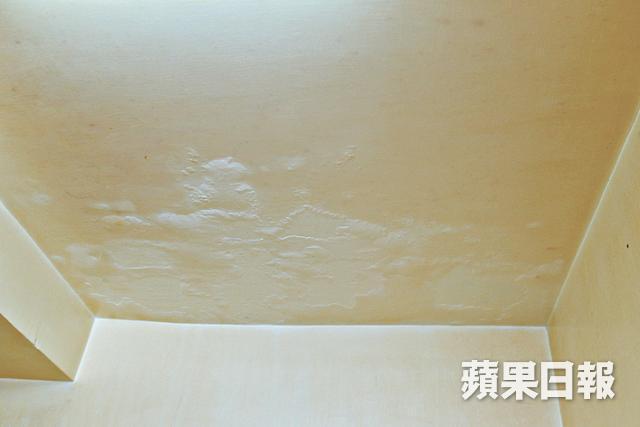 記者甫踏入殘裝單位,看到牆身及天花的油漆雖然未發霉,但亦相當污糟,更有不少「甩灰」的情況,而「地腳」則佈滿灰塵及垃圾。兩間細房面積不大,僅能容納一張單人床及擺放書枱或衣櫃,其中左邊靠門口的房間,因為有窗口連接單位外的走廊,通風較好,不過近半面積的天花都「起卜」,問題相當嚴重。