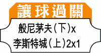 至於周六英超早場,曼聯則作客般尼茅夫,後者今季主場不敗,而且贏多和少,紅魔要如對上兩季在此地帶走三分,未必如願。更值一提是紅魔今季兩次在周六早場出戰都失分,故般茅受讓平/半抵捧。(球賽編號:星期六18;now621台今日8:30pm直播)(此場設「球員—特別項目」及「首名入球」投注)