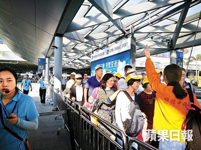 《蘋果》日前到珠海拱北口岸一帶查看,發現超過50間旅行社可代訂香港一天遊旅行團和自由行,記者其後以368元人民幣參加其中一個「港珠澳大橋昂坪一天團」,經大橋來港後,乘搭昂坪360纜車觀賞天壇大佛,及後安排到東薈城名店倉購物。