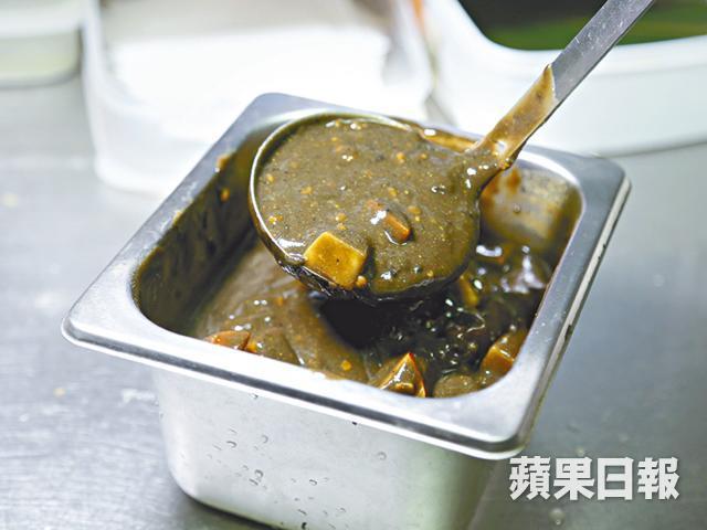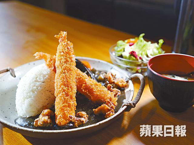 小店沒有特別的裝潢,亦沒有居酒屋的高檔格調,店內有數張餐枱以及一張長吧枱,客人可選擇在吧枱邊吃邊欣賞師傅的功架。食物方面,有傳統居酒屋必有的串燒,阿強特別推薦沖繩煙熏豚肉,帶少少鹹味,是不錯的下酒小菜。店內招牌絕對是小店自家炮製的日式黑咖喱,由於製作繁複,每日只做午市,並限量賣15份,師傅每晚都要準備隔日的湯底,「我們的黑咖喱用了蝦殼和龍蝦殼做湯底,每日要熬六小時,再加墨魚汁。煮的時候加了蘋果茸,最後再放蘋果粒,因為蘋果可以帶出咖喱的甜味,蘋果粒就增加口感。」黑咖喱有多款配搭,不過阿強指因湯底是用海鮮熬製,所以海鮮跟黑咖喱最夾。
