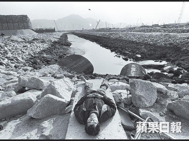 過去西九地盤不時會有一個拖着沉甸甸器材箱子的身影,就是謝至德,有時他要把器材抬上六七層樓。這段日子除了好天曬、落雨淋,他還要克服塵埃和畏高恐懼。「鐵架就算安全它也會搖,好驚!惟有投入工作便能忘我,所以我經常要拿着相機,否則會腳軟,真是腳軟。」拍攝工地其實很危險,施工地方每天都變,他不如工人熟悉環境,故時刻都要警惕。