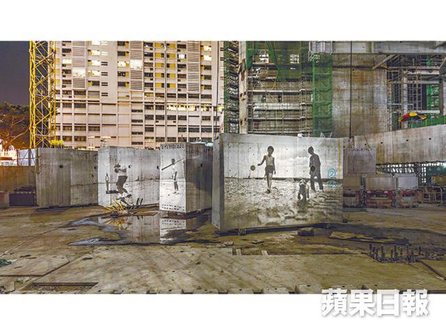 隨着西九第一幢建築物戲曲中心建成,謝至德也決定了結這個漫長的攝影計劃。「從1994年開始,在西九填海區做一個關於香港土地的藝術作品,如今正式畫上句號。」某個黑夜,他闖進荒蕪的戲曲中心工地,用投影機把自己九十年代拍攝西九填海區舊照逐一投影到白牆、水管、布幕上,像古老影畫戲,更似是為悼念逝去日子的神聖儀式。