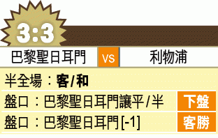 歐聯死亡C組周三再爆大戰,上屆亞軍利物浦作客法甲班霸巴黎聖日耳門(PSG),首循環對碰紅軍贏3:2,今仗只要再贏隨時可奪出線權;反觀PSG背城借一,就算主將尼馬及基利安麥巴比趕及上陣,也難讓反擊力強的利記,紅軍受讓平/半必捧下盤!(球賽編號:星期三10;香港開電視77、now643及有線662台明日4:00am直播)