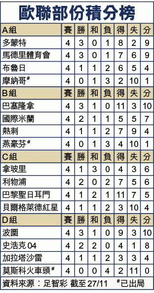 目前拿玻里與利物浦在C組同得六分並列榜首,PSG及貝爾格萊德紅星落後1分及2分,分組賽尚餘兩輪,如榜首兩隊周三同告獲勝即攜手出線,意味PSG今仗至少要保持不敗,才有望爭取晉級。