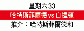 哈特斯菲爾德上場作客擊敗狼隊,可能是開季至今其中一場最令筆者感意外的賽果,球隊近3場錄得2勝1和後,升到第15位,今返回主場對同級的白禮頓估計繼續穩守;白禮頓近三場皆有失,作客不會太主動,可博和。