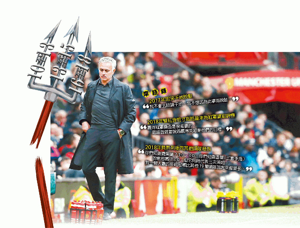 縱使曼聯成績不似預期,自稱「特別的人」的摩連奴依然不失自信。他在八月開記招時,曾自稱世上最偉大領隊:「我是唯一一名能拿下八個主要聯賽錦標的主帥,在英格蘭、西班牙和意大利(及葡萄牙),我都贏過,這不是一些無關痛癢的小獎盃。」然而,「摩三季」又再應驗,摩連奴在皇家馬德里以及車路士都經歷過同樣遭遇,首兩季成功為球會拿取榮譽,可是球隊到了第三季戰績急轉直下而被炒。摩連奴亦不善於處理與球員的關係,在皇馬時期已經與隊長卡斯拿斯鬧不和,而今季更被傳媒拍到與陣中主將保羅普巴口角,季初又批評前鋒安東尼馬迪爾陪伴女友在法國產子後,不馬上飛回美國歸隊。