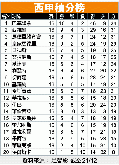 【名家足路】西甲今周進行歇冬前最後一輪賽事,一哥巴塞隆拿上場作客大勝利雲特後,今日返回主場迎戰排名第九的切爾達,雖然切爾達在易帥後已表現有改善,但巴塞近仗表現極專注且積極,可期大勝迎聖誕。