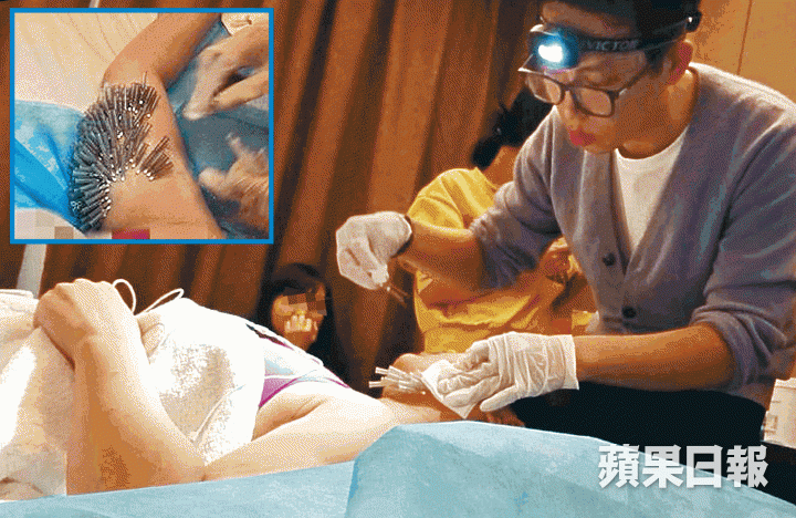 【本報訊】近年流行微整形,打美白針、溶脂針、隆鼻、皮膚填充等成為貪靚少女最愛,在社交平台可輕易搜尋這類資訊,一名本港少女便利用微信、WhatsApp穿針引線,組織一班以女學生及年輕OL為主要客路、橫跨中港澳三地的美容整形團,定期在不同酒店進行整形手術。《蘋果》放蛇直擊恐怖駭人的手術過程,揭發操刀的竟然是冒充醫生的內地男。血腥手術床上,身插百針的少女疼痛叫喊不斷,令人心寒。