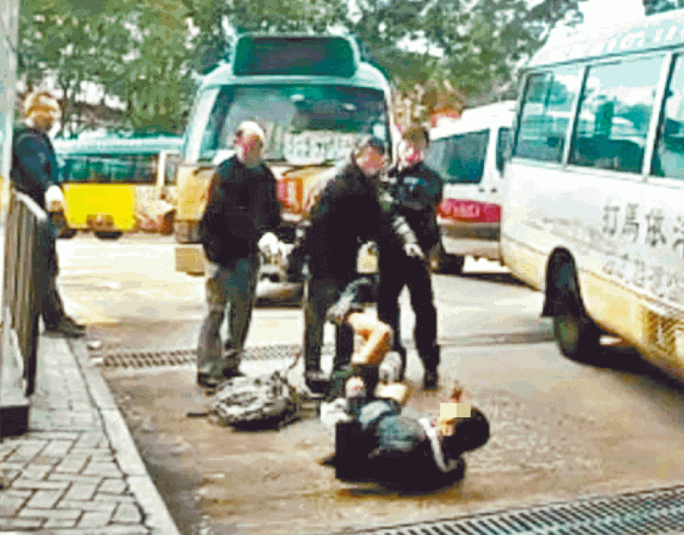 33歲短褲男報警,話佢過馬路嗰陣停喺小巴站嘅小巴砵佢,佢同68歲小巴司機爭執。當警察去到現場嗰陣,林先生影嘅片段見到短褲男拎返起個背囊同行李袋,小巴司機同行家好緊張走上去叫佢放返喺原位,有人好大反應即時跌落地下,小巴司機指住佢:「詐諦吖嗱,詐諦呀!」仲即刻同警察解釋:「我冇揩埋佢度呀!」