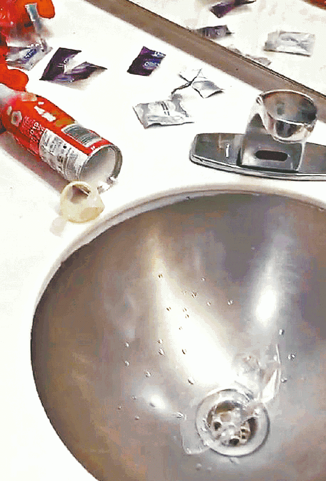 讀者陳先生前日(31日)凌晨4點左右,喺赤柱參加完朋友聚會後,準備離開返市區,佢打算入廁所除咗副con先走,當入到市政大廈旁邊嘅公廁時嚇咗一跳,「想洗手嗰刻,見到一個condom塞住去水位,已經冇留意入面有冇料,好惡心!」陳先生仲發現幾個洗手盆都佈滿避孕套包裝袋,仲有一件紅色上衣同埋酒樽,兩個避孕套嘅包裝盒仲放咗喺洗手液樽上面,未算誇張,其中一個廁格地上有6、7卷廁紙,另一格又有一個避孕套,一副大戰完嘅場面。
