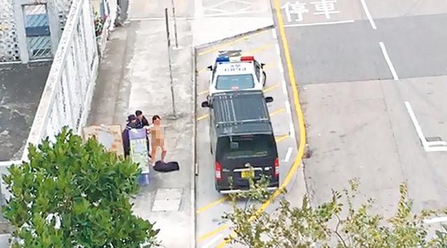 讀者劉先生噚日下晝近1點,喺大圍見到咁驚心動魄嘅呢一幕,當時佢由積泰里一幢大廈,見到一位光脫脫嘅大媽,同警員對峙,其間不停向住附近一間中學大叫,片段見到,一男一女警員雙手捉住大媽,但大媽依然周身郁,最終警員一下反手將佢按咗落地,另一位就好貼心咁幫佢冚上毛氈遮住裸體,之後又尷尬地行開。過咗冇耐,有一男一女便裝警員趕到,最後大媽由救護車送院。劉先生話當時咁啱係中學午飯時間,一班學生見到即刻尖叫,更加有人歡呼。