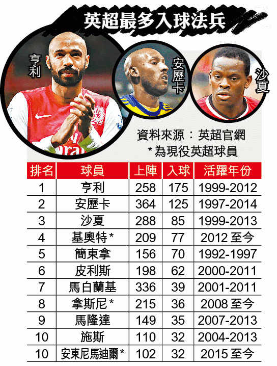 說到英超法國幫,就不得不提前阿仙奴的法籍領隊雲格怎樣建立一支以法國兵為重心的兵工廠,並於03/04球季以不敗之態奪得英超,成為名留青史的「不敗之師」(The Invincibles)。當年的阿仙奴坐擁法國巨星如前鋒亨利、翼鋒皮利斯及雙防中比堤與韋拉,雲格亦把「香檳足球」的華麗踢法引入英超,令兵工廠叱咤一時。