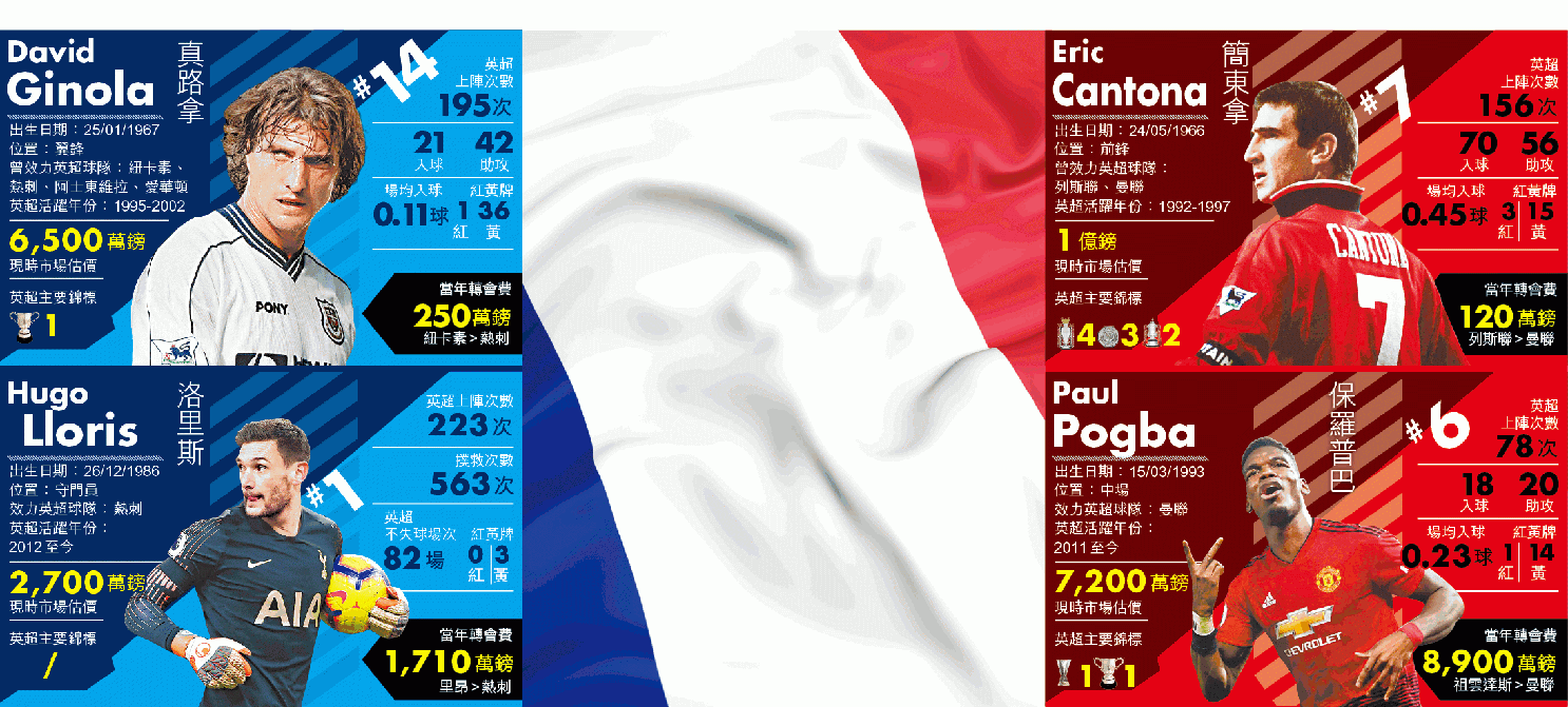 英國將於三月底正式脫歐,但英超要脫歐,特別是與法國脫離關係,基本上可說不可能。英超獅子與法國高盧雄雞關係千絲萬縷,英超有今日的盛世,法國出力不少。以周日曼聯作客熱刺的英超大戰為例,兩隊的主力除不乏法國兵外,歷來亦招攬過不少出色的法國球員,據統計,今季20支英超球隊中,18隊都至少有1名法國兵!