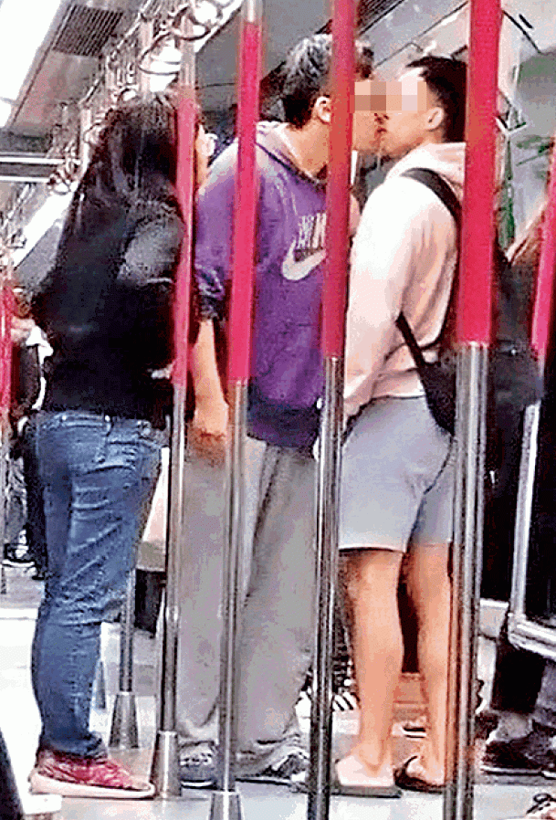 兩男互相拉扯期間,四眼男突然攻其不備,以一個「初戀無限touch」方式嘴對嘴錫錫踢拖男,對方被奪去「同性初吻」後不甘受辱,即刻起手一巴摑向四眼男,當場打甩對方眼鏡;之後再叉住對方條頸,女子見到即幫拖,上前不斷拍打踢拖男個頭,造成三方混戰,踢拖男驚魂未定質疑對方「you kiss me?」有乘客驚再生事端,透過對講機通知車長,列車抵達大圍站後,職員到場處理事件。