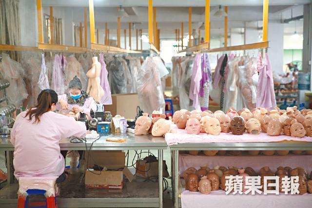 中山獅山工業區深處,金三模特道具的招牌掩映在一片綠蔭中,五層樓高的廠房幽靜而老舊,誰知一具具用來滿足性慾的人造女神,正從這家不起眼的工廠銷往世界各地。金三每月生產約1,500至2,000個娃娃,其中80%銷往國外,生產規模在內地數一數二。難以想像的是,金三掌舵人居然是「一介女流」,總經理劉江霞與丈夫10多年前從四川到廣東創業,起初以「生產服裝人體模特兒」起家:「初時的客人主要是買娃娃拍攝內衣或服裝商品,直至有客戶提議,不如將娃娃設計成情趣娃娃,終於有了今天的雛形。」