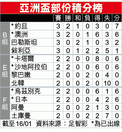 周四亞洲盃F組最後一輪賽事,日本鬥烏茲別克爭奪小組首名晉級。藍武士首兩戰只能險勝,今面對同組最強的烏茲別克,要讓半/一,宜敲下盤。(球賽編號:星期四1;now671台今日9:30pm直播)<br/>文:亨少